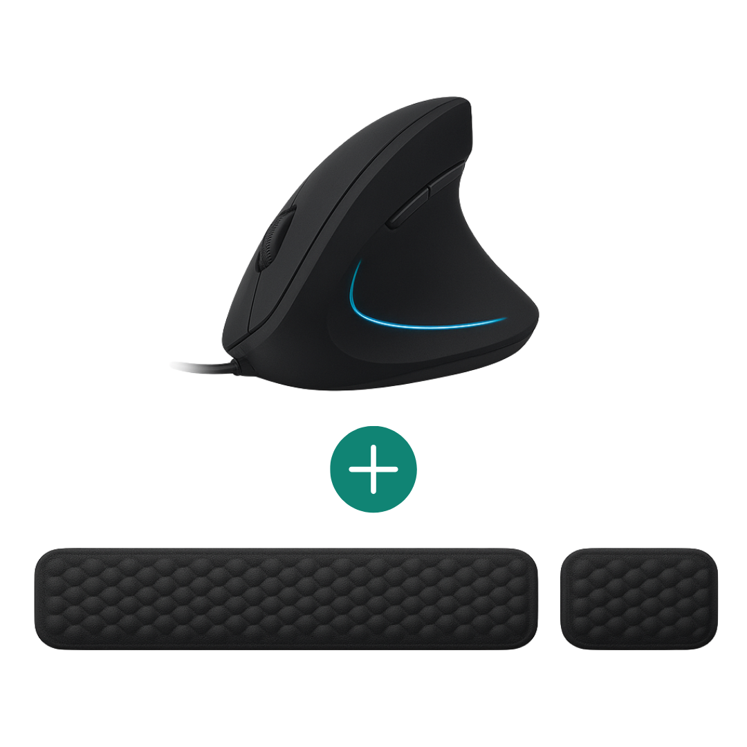 Deze bundel is speciaal ontwikkeld voor mensen met eenzijdige muis- en toetsenbordbelasting. De gevoerde handsteun zorgt voor een ontspannen houding tijdens het typen, de verticale muis ondersteunt een natuurlijke handpositie - voor pijnvrij en productief werken.
