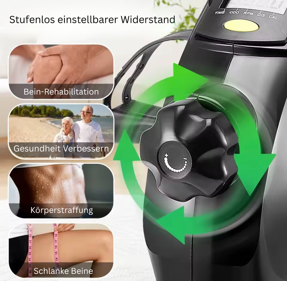Der magnetische Mini-Pedaltrainer eignet sich hervorragend für sanftes Bewegungstraining, etwa zur Aktivierung der Muskulatur oder zur Unterstützung der Mobilität. Durch den stufenlos einstellbaren Widerstand lässt sich das Training individuell anpassen – ideal für Einsteiger, Senioren oder den Reha-nahen Einsatz.
